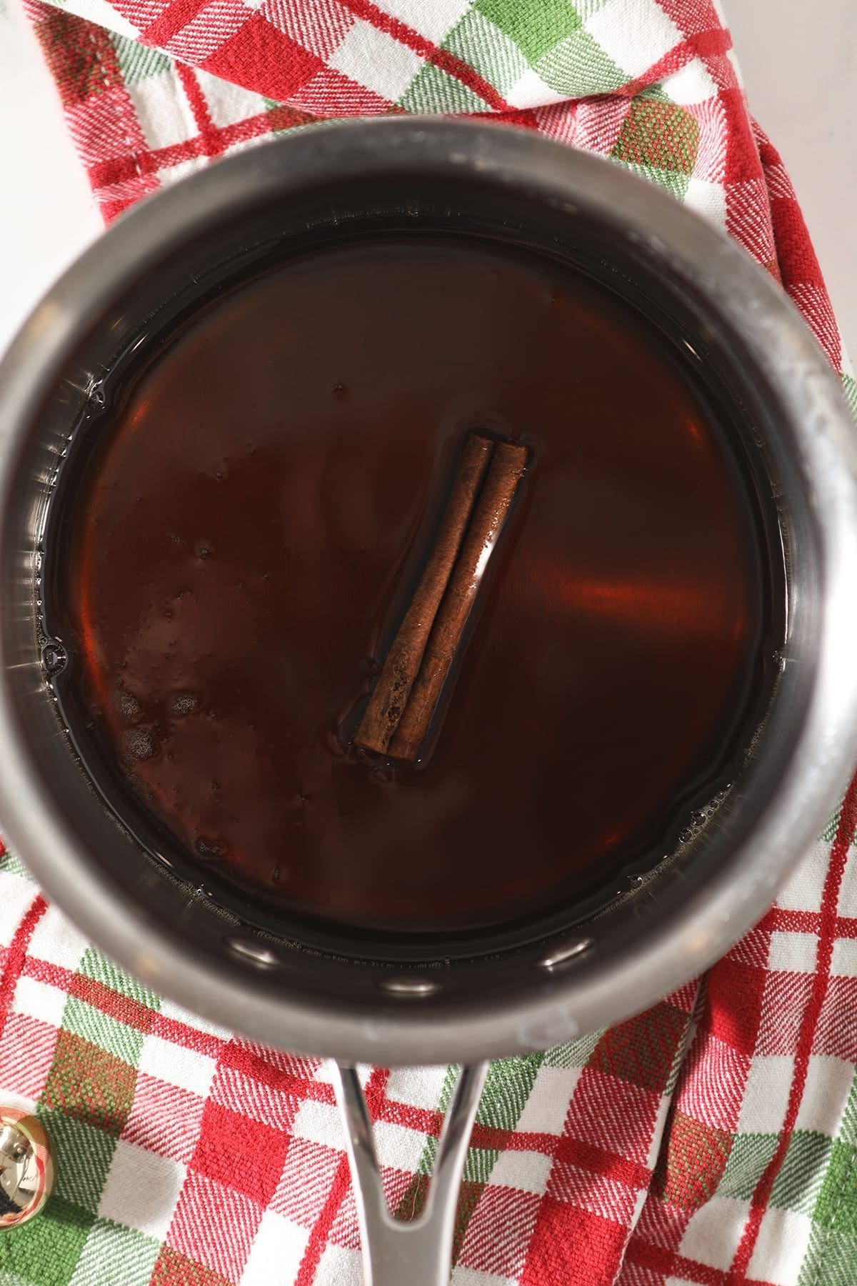 Let’s be clear: This syrup isn’t the kind that you’re going to use in your coffee. Instead, we’re going to drizzle it over our stack of eggnog pancakes. It’s delightful and just calls for two ingredients.