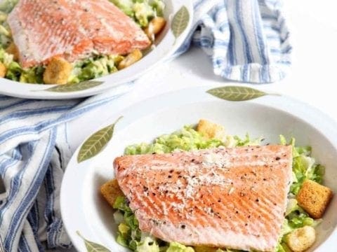 This easy Salmon Caesar Salad itself is hearty (and has a nice crunch with the croutons) and the salmon is flaky, flavorful and beautiful… It makes a wonderful combo.